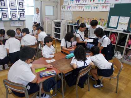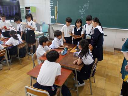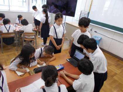今朝のステップアップタイムに、4年生が3年生の教室を訪れ、高知県のよさこい踊りについて説明をしました。3年生と4年生は、今年の運動会でよさこいを一緒に踊ります。発表ソフトを使ったり、画用紙にまとめたり、クイズにしたりと、どの班の説明もとてもよくできていました。これから運動会に向けて、3年生と4年生で協力して頑張っていきます!