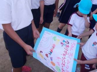 9月に読み聞かせ交流をした菅南幼稚園の5歳児のみなさんが、5年生の児童にお礼のお手紙を渡してくれました。手紙は、5歳児のみなさんの「読み聞かせをしてくれてありがとう」の気持ちでいっぱいです。お手紙を教室に掲示すると、みんな嬉しそうに見ていました。