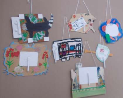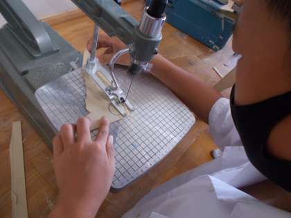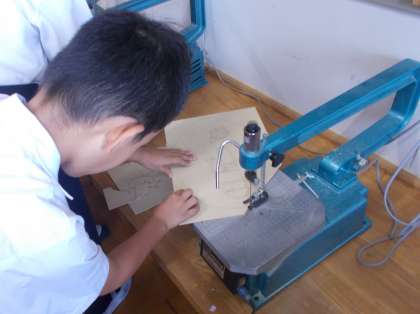5年生の子どもたちが、図画工作で「ホワイトボード伝言板」を作りました。自分のデザインに合わせて、電動糸のこぎりで板を切りました。初めて使う電動糸のこぎりでしたが、手を置く位置に気をつけ、板をしっかり押さえて、慎重に作業しました。切った後には、絵の具で色を塗ったり、ホワイトボード板を張ったりして、世界に一つだけの「ホワイトボード伝言板」が完成しました。
