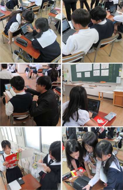 本校では「協動的な学びを通して互いに高めあう子どもを育てる」をテーマに授業研究会を実施しています。今回の授業は、5年生の国語の学習「和の文化を発信しよう」でした。学習の目的を達成するために必要なことを自分自身で考え、計画を立てて学習を進めていきました。一人一台端末を用いて作成する子もいれば、紙に直接情報をまとめる子もいました。友だちの考えを聞いて情報を整理したり、友だちの作成しているもののよさを自分の作品に取り入れたりと、協働的に学習を進めていきました。
