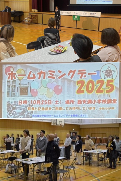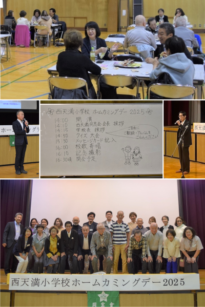 一昨日の土曜日、西天満小学校同窓会主催のイベント「ホームカミングデー」が開かれました。大正時代からの懐かしい映像や、古いアルバムを見ながら、卒業生の皆さんが昔話に花を咲かせておられました。このイベントは、毎年この時期に開かれています。本ホームページの上方のタブ「同窓会」にて、ご案内を掲載させていただいております。どの時代の卒業生の方でも、一度ご参加いただけたらと思います。