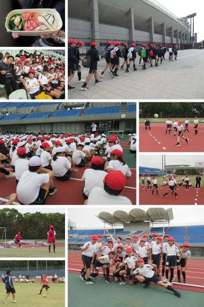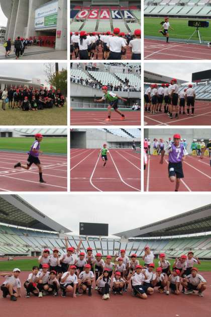 北区の6年生が長居公園に集まり、スポーツ交歓会が行われました。午前は、ヤンマースタジアム長居で陸上競技での交流。100メートル走や400メートル走では、全力で走り切る姿に大きな拍手が送られました。400メートルリレーでは、代表メンバーが気迫の走りを見せ、観客席も大盛りあがり。 昼食後は、ヤンマーフィールド長居で球技での交流。ドッジボールでは、普段の休み時間とは違う緊張感がありましたが、とても楽しそうでした。サッカーでは、天然芝のフィールドでのびのびプレーしました。シュートや好セーブに大きな歓声があがり、応援する楽しさも感じることができました。他校の6年生と互いの健闘をたたえ合う、素晴らしい交歓会になりました。