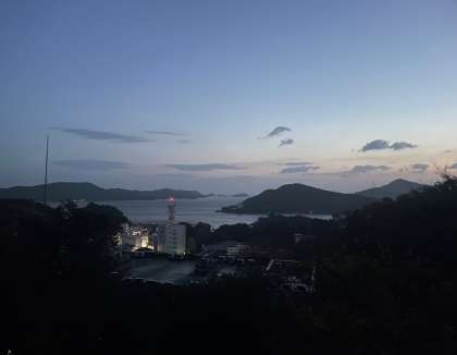 おはようございます。6:00の起床時刻となりました。三重県鳥羽湾の朝の景色です。いいお天気となりそうです。