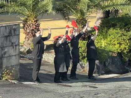 予定より少し早く、9:00過ぎに宿舎を出発しました。このあと、鳥羽水族館に向かいます。