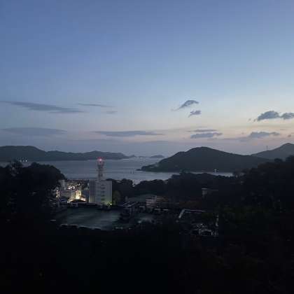 おはようございます。6:00の起床時刻となりました。三重県鳥羽湾の朝の景色です。いいお天気となりそうです。