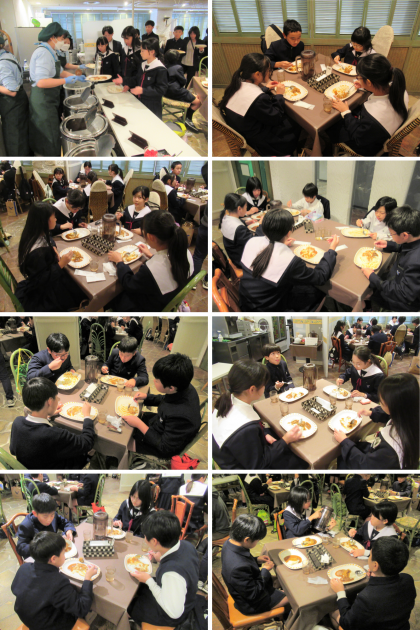 午前の見学が終わり、昼食時間となりました。今回は、カレーバイキングです。3種類のカレーを何度でもおかわりすることができます。みんな美味しそうにたくさん食べていました。