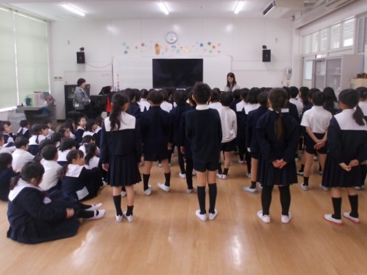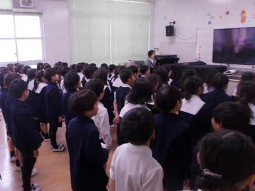 1・2年生からは、お世話になった6年生へ歌のプレゼントとして、『きらきら星/また会おう、また歌おう』を合唱します。