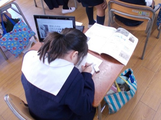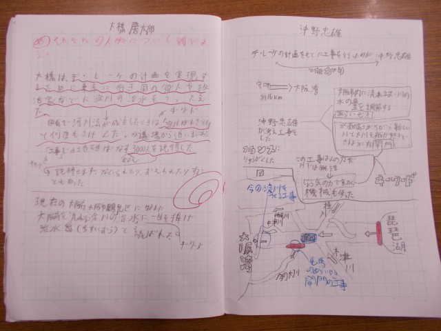 4年生の社会「淀川をつくりかえた人々」の授業の様子です。自分たちで学習計画を立てて、淀川の改修工事にかかわった人について調べています。教科書に書かれていることのほかに、自分たちで調べたことなどについても交流することができました。交流した内容を振り返り、次の時間に活かしていきます。