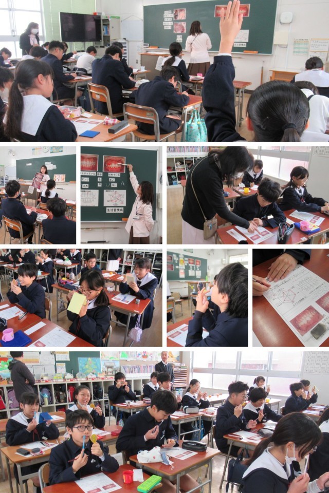 歯科衛生士さんに来ていただき、6年生を対象とした歯みがき指導が行われました。これまでにも歯みがきの仕方や虫歯については学んできましたが、今回は歯周病がテーマ。大人だけの病気だと思いがちですが、実は子どものうちからのケアがとても大切だということを教えていただきました。健康な口の中と、歯周病になった口の中を比べると、歯ぐきや歯の様子にははっきりとした違いがあり、子どもたちも驚いた様子でした。実際に自分の口の中もチェックしながら、「毎日の歯みがきってやっぱり大事」「よく噛んで食べることも大切なんだな」と実感する時間になりました。これから先も自分の歯と長く付き合っていく子どもたち、今日学んだことを、毎日の生活の中で生かしていってほしいと思います。