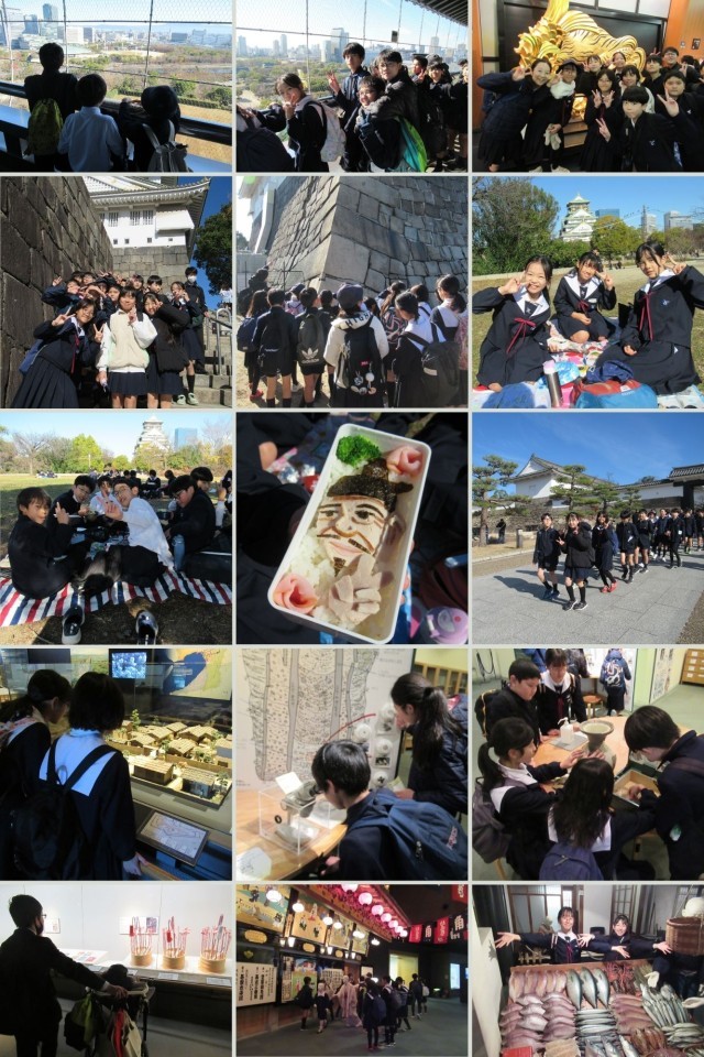 6年生が小学校生活最後の社会見学に行きました。まずピースおおさかを訪れ、戦争中の大阪の様子や空襲によって人々の生活が大きく変わってしまったことを資料や展示から学び、平和の尊さについて改めて考えました。次に訪れた大阪城では、立派な石垣や天守を実際に見ながら、城が果たしてきた役割や当時の人々の知恵や工夫について理解を深めました。さらに大阪歴史博物館では、模型や映像を通して大阪の町が時代ごとに姿を変えながら発展してきた様子を学び、社会科で学習してきた内容と実際の歴史とを結び付けて考えることができました。今回の社会見学を通して、子どもたちは大阪の歴史を多面的に捉えることができ、今の暮らしがこれまでの歩みの上に成り立っていることを実感する貴重な学びの一日となりました。