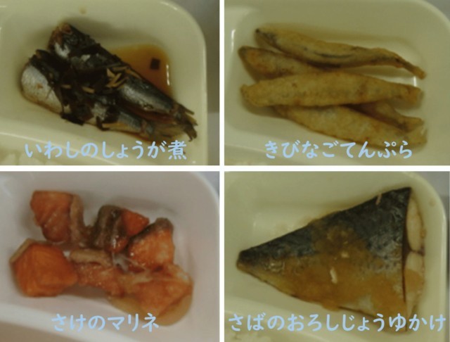 今日の給食には「いわし」が登場しています。12月には、ほかにも、「きびなご」「さけ」「さば」といった魚が登場しました。