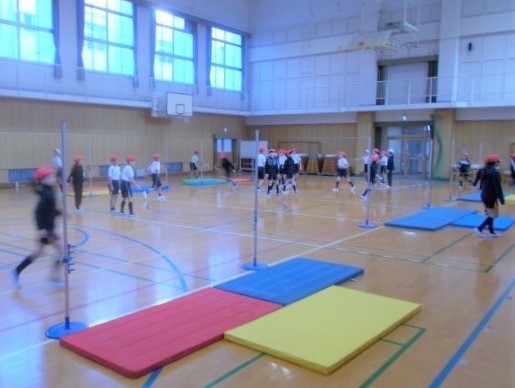 4年生の体育「高とび」の学習の様子です。2クラス合同で行っており、それぞれに合った高さで練習しています。跳ぶときの体の向きや足の上げ方、踏み切るときの足や助走など、お互いに技を見合いながらアドバイスや気づいたことを伝え合っています。少しでも高く跳べるようこれからも練習していきます。