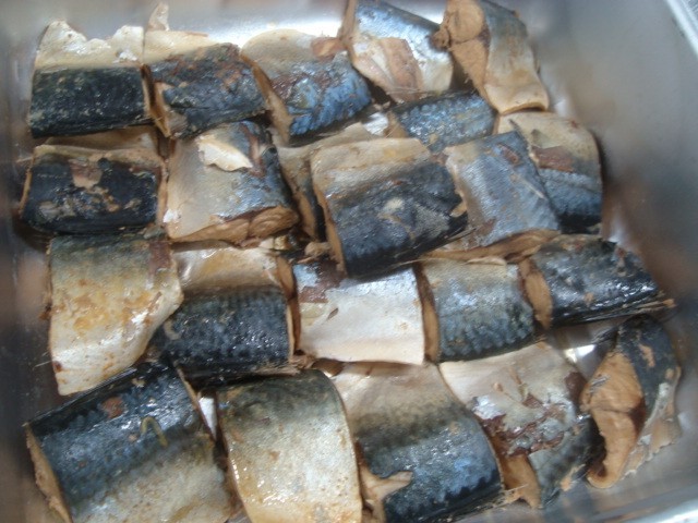 大釜にだしこんぶを敷き、骨付きのさばを並べ、しょうが、砂糖、みりん、赤みそを加えて煮含めたのが今日の「さばのみそ煮」です。子どもたちは、さばの骨に気をつけて、上手に箸を使って食べていました。