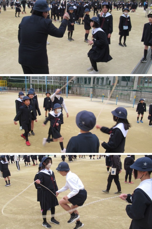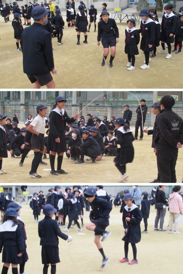 今回の体育朝会では、2月にある「たてわり大縄大会」の練習をしました。高学年が中心となり、8の字跳びの練習に取り組みました。高学年が低学年に、跳び方や縄に入るタイミングを教える姿もありました。2月の本番までに練習を重ねて、班の目標を達成できるよう協力して頑張りましょう!