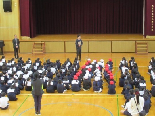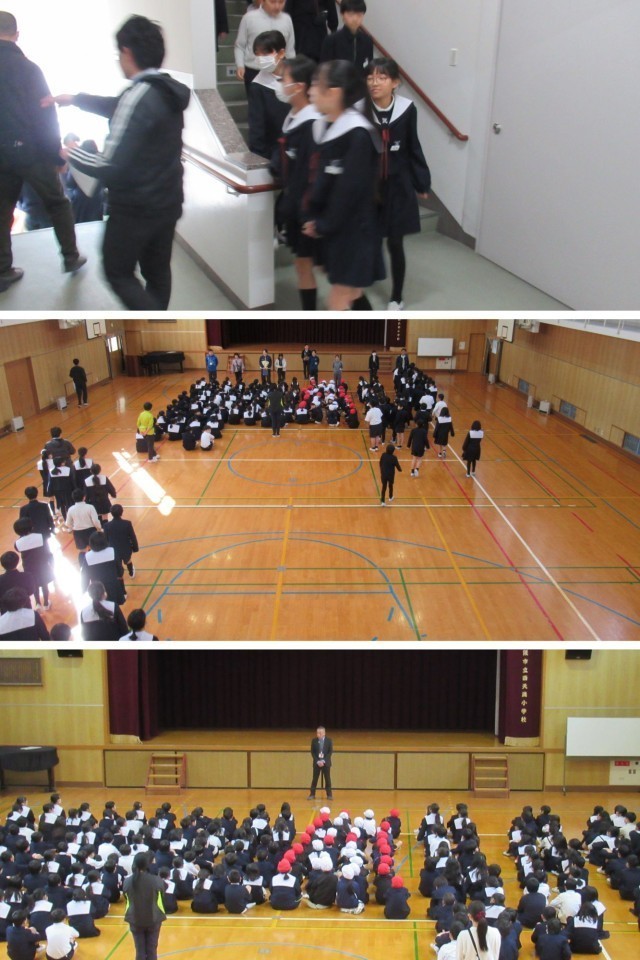今日は、不審者が校内に侵入したという想定で避難訓練を行いました。司会の先生からは、日ごろから地域であいさつをすることや、いのちを守るために真剣に訓練に取り組むことが安全につながるというお話がありました。校長先生からは、大阪府下でこれまでに実際に起きた事件についてのお話や、下校時の正門横扉の確認などのお話がありました。訓練を通して、事前準備の重要性について学ぶことができました。