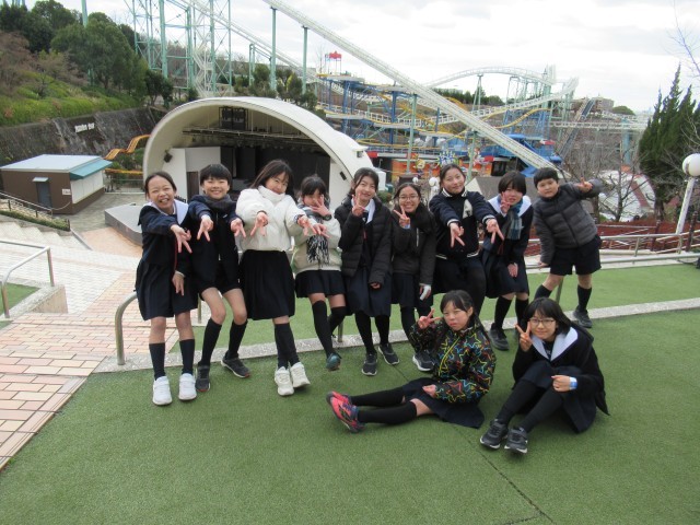 6年生が、卒業遠足で「ひらかたパーク」に行ってきました。お天気に恵まれ、まさに遠足日和でした。園内では、班で相談しながらアトラクションを回ったり、「次どこ行く?」「あれ乗りたい!」と作戦会議をしたり、どの班も声をかけ合いながら行動する姿がたくさん見られました。スリル満点の乗り物に挑戦する子、ちょっぴりドキドキしながらも友達に背中を押されて乗る子、それぞれが友達と過ごす時間を思いきり楽しんでいました。お昼には、お家の人に作ってもらったお弁当を嬉しそうに食べていました。友達と一緒に食べる小学校生活最後のお弁当は、いつも以上においしかったようです。小学校生活も残りわずか。この卒業遠足は、友達と過ごす時間の大切さを改めて感じられる、思い出いっぱいの一日になりました。また一つ、6年生の心に残る大切なページが増えました。