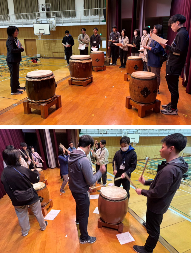 文部科学省の中央教育審議会では、「『令和の日本型学校教育』を担う新たな教師の学びの姿の実現に向けて」において、「教師自身が、強みを伸ばすことができるよう、個性に即した個別最適な学びに加え、知識技能の修得だけではなく、教師としてふさわしい資質能力を広く身に付けていくため、協働的な教師の学び」を重視すると示されています。本校においても、外部講師を招いて授業研究会をしたり、若手教員が授業力・指導力向上を目的に研修会を実施したりしています。今回は、本校の特色ある取り組みである「琴」と「太鼓」の研修会を行いました。楽器の背景にある歴史や、奏法・指導のポイントなどについて、実技を交えながら研修を行いました。
