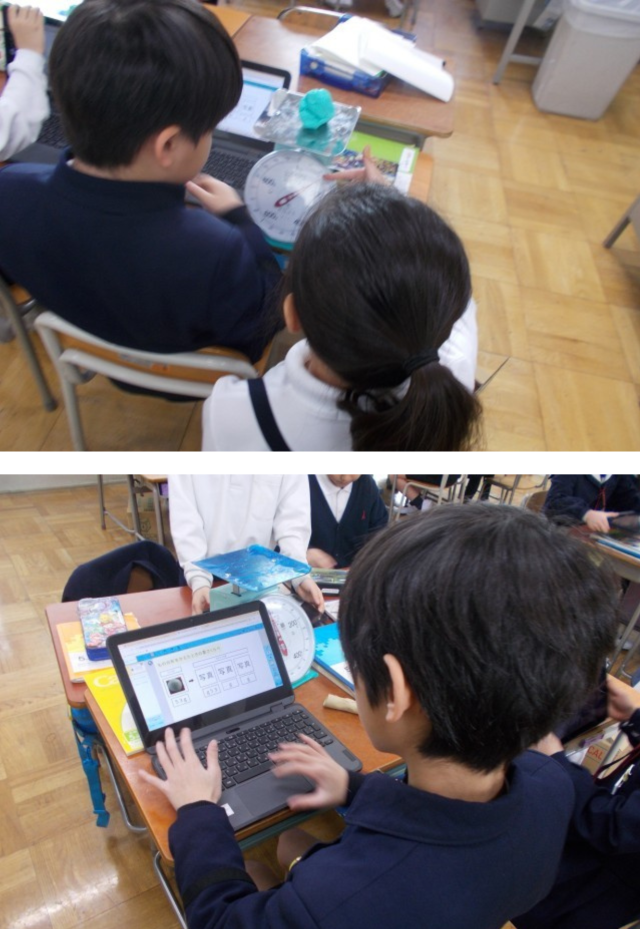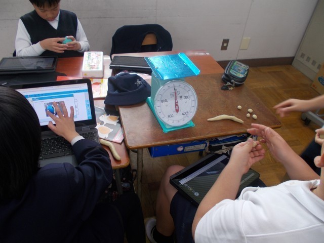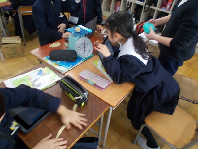 3年生の理科「ものと重さ」の学習の様子です。もともとあった形を変えて重さをはかった時に、重さが変わるのかどうかを調べました。もとの形から、細かくちぎってみたり平たくのばしてみたりと形を変えても、重さは変わらないことがわかりました。もとの形から、粘土を増やしたり減らしたりしていないから重さは変わらないんだと、その理由についてしっかりと考えることができました。