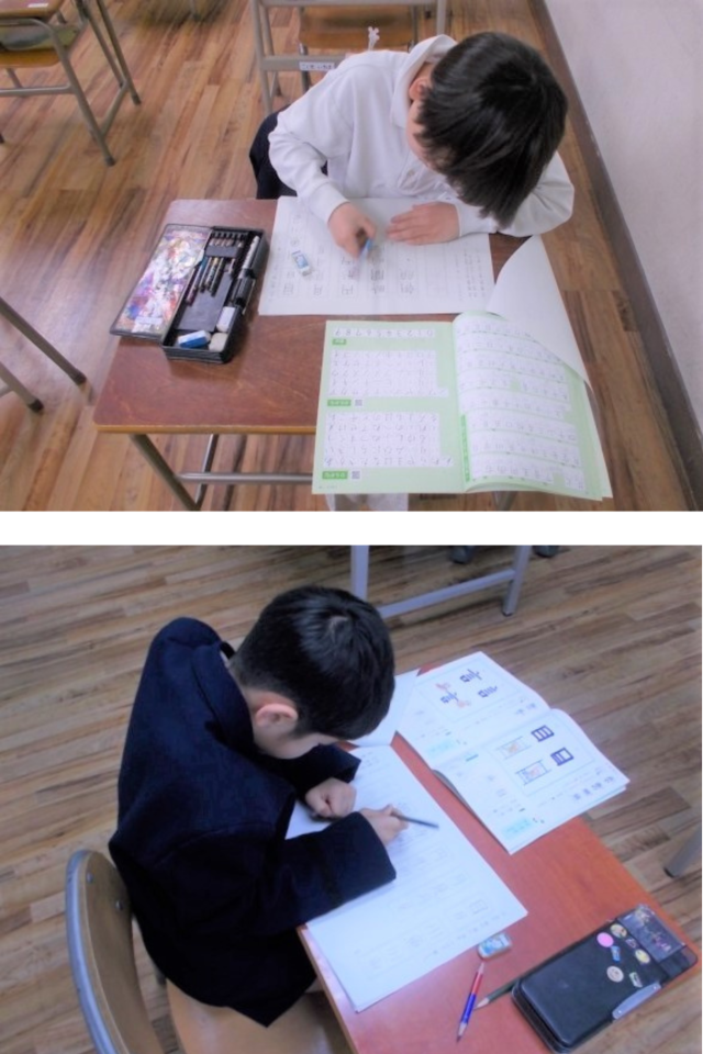 2年生の書写の時間です。今年度学習した漢字の復習をしています。点や画の間や画の長さに気を付けながら、ていねいに文字を書くことができました。点や画の間を同じくらい空けることや、横画は一つだけ長く書くことなど、文字によっての大切なポイントに気をつけて書くことができました。さすが2年生ですね!
