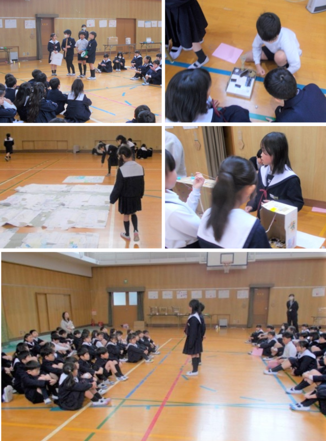 3年生と2年生の合同の取り組み「おもちゃランド」の様子です。3年生になると社会や理科、総合的な学習の時間、毛筆書写、リコーダーなど、新しい学習がたくさん始まります。3年生から2年生に、リコーダーを演奏したり毛筆で書いた文字を見せたりして新しい学習について紹介し、3年生という学年の楽しさを伝えました。また、新しく始まる教科の理科で学習したことをもとにおもちゃをつくって、2年生と一緒に楽しく遊びました。両学年の子どもたちが、進級する喜びを感じてくれたことと思います。