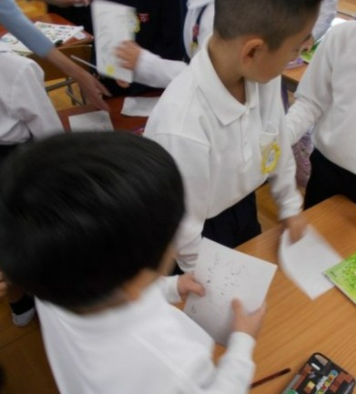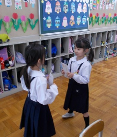 画用紙に名前を書いて、紙を見せながら自分の名前を紹介しました。