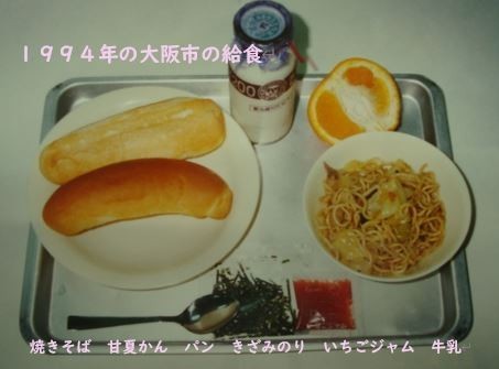 焼きそばは、昔から児童に人気がある献立です。昔に比べて焼きそばの麺の量が増え、パンの量が減っています。