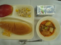 12月23日「冬野菜のカレーライス ブロッコリーとコーンのサラダ 和なし(カット...