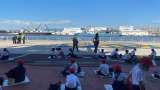 素晴らしい眺めの中、昼食をいただいています。目の前に観光船が通ったり、大きな貨物...