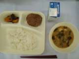 10月28日 「和風ハンバーグ みそ汁 かぼちゃのいとこ煮 ごはん 牛乳」
