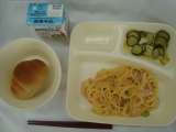 3月23日 「さけのクリームスパゲッティ キャベツときゅうりのサラダ パン 牛乳...