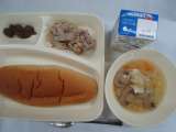 6月30日 「えびのチリソース 中華スープ スライスチーズ 黒糖パン 牛乳」