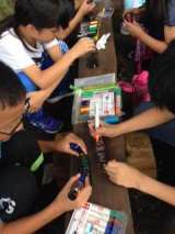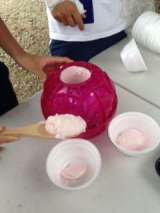 バードコールに模様つけ 凧上げ スイカ どんどん楽しいプログラムが進みます。