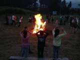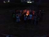 キャンプファイヤー 火の神様シーバと火の子2名が点火した炎をかこんでみんなで楽し...