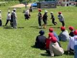 続いての活動は、高原遊びです。まずは、5年生全員が輪になって行うハンカチ落としを...