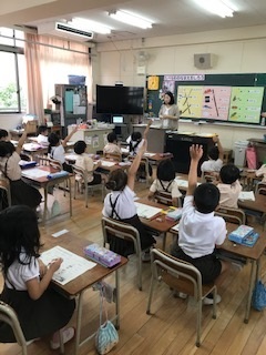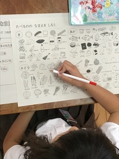 1年生は、栄養について学習しました。一番身近な給食のメニューから食べ物の絵と名前を線で結び、給食にはいつもたくさんの食べ物が入っていることや、栄養のバランスを考えて作ってくださっていることを知りました。みんな、とても意欲的に学習に取り組みました。