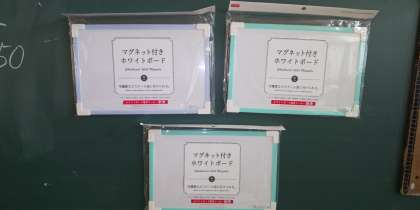 菅北小学校の児童全員に、A4の大きさのホワイトボード1枚と赤青黒のホワイトボードマーカーを3本配りました。これは、子どもたちが「主体的・対話的で深い学び」をするため、自分の意見を書いて対話のツールにしたり、考えの可視化を図り、ディスカッションを活発するためです。校長戦略予算を使って購入しました。今までは授業中、手を挙げて発表しても全員が発表できません。ホワイトボードを使えば、一人ひとりどんな考えを持っているか、一目でわかります。それは先生もそうだし、子どもどうしでもそうです。コミュニケーションツールとして活用してほしいと思っています。もちろん、タブレットも同じような効果があり、今教室ではどんどん活用されています。