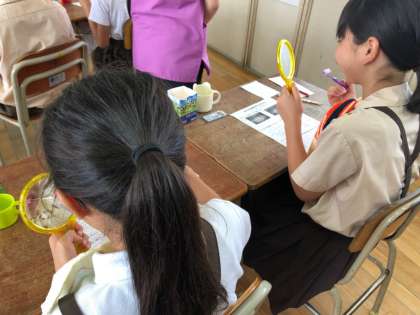 普段、食べている物や食べ方、かむ回数、みがき残しなどが原因でむし歯や歯周病になりやすくなること、歯周病を自分で見分けて予防することの大切さを教えていただきました。また、歯の染め出しをして自分の歯磨きがきちんとできているかどうかを確かめました。