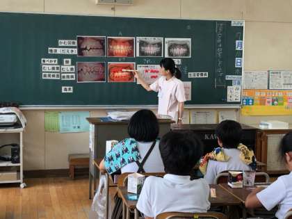 7月10日(水)、歯科衛生士さんと歯科校医の樋口先生にお越しいただき、6年生に「歯と口の健康教室」を実施しました。