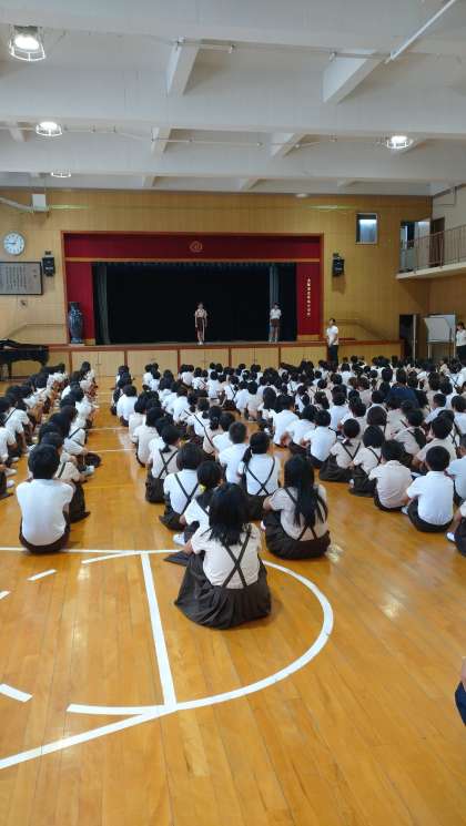 始業式では、校長先生のお話を聞きました。2学期にそれぞれが目標をもって生活をする大切さについてのお話でした。また、代表児童の5年生も自分の2学期の目標をしっかりと発表できました。聞いている児童も目標を持って2学期の学校生活を頑張ってほしいです。その後新しい先生の紹介、校歌斉唱をしました。