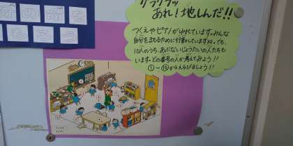 地震はいつ来るかわかりません。この掲示物を見て、自分で自分の体を守れるようになってほしいです。今、保健指導で4年生が、地震の持ち出し袋のことを学習しています。