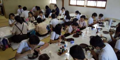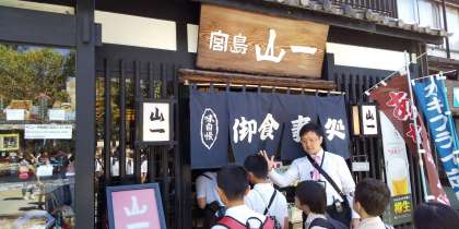 宮島の山一さんで、お昼をいただいています。お腹がすきました。