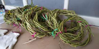 2年生は先日芋ほりをして残ったサツマイモのツルを使ってリースを作りました。クリスマスの使うため、白く塗ったり、ヒイラギの葉をつけたり、鈴をつけたり工夫しようかと思っています。