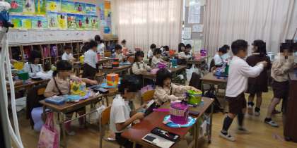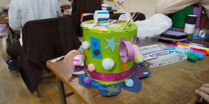 11月16日(土)の土曜授業と並行して、作品展を開催します。それに向けて今、子どもたちは学年に応じて立体作品つくりに取り組んでいます。平面作品は出来上がっていますが、おいて置く場所がないので、立体作品は今が稼ぎ時です。風邪などで体調を崩して休んでいる児童は、登校した時に頑張ってもらおうと思っています。どの教室も、しーんとした中で集中して作品のデコレーションに一生懸命です。