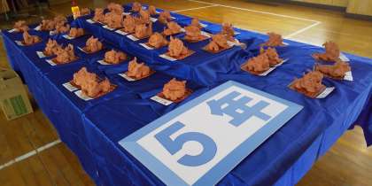 講堂で作品展を行いますが、その準備が出来あがりました。一部だけご紹介します。