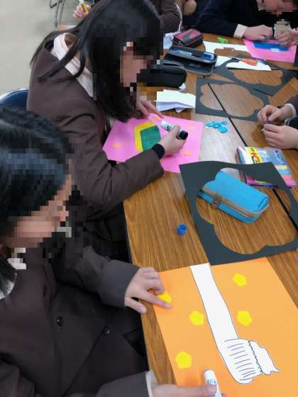 素敵な飾りができあがりました。2月6日に行われるキッズマートのお店のどこかに飾られる予定です。ぜひ、見に来てください!