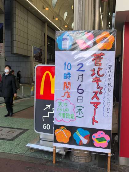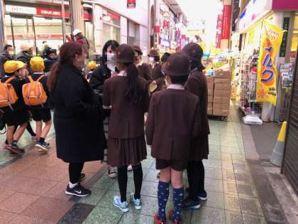 6年生が今、準備を進めているキッズマートまであと1週間になりました。今日はお店を開く天神橋筋商店街でちらしを配りました。立ち止まって子どもたちの説明を聞いてくださる方もいて、子どもたちもますますやる気いっぱいです。