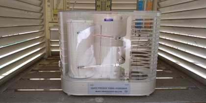 4年生は先日、学習園の百葉箱に行って、中を観察しました。記録温度計や湿度計を見ました。初めて見る児童が多かったです。クラスを2分割して授業を進めているため、クラスの半分はまだ体験していません。明日もう半分の児童とともに観察に行きます。グラフの動きと天気の変化を関係づけて思考していきます。ちょうど梅雨の入りと重なってよい結果が見られそうです。7
