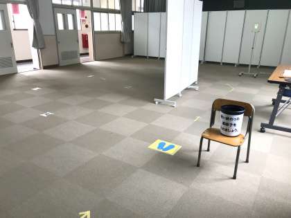 今週から視力検査が始まっています。眼鏡を使用している人は、忘れずにもってくるようにしてください。新型コロナウイルス感染症予防対策を取りながら検査を進めています。検査で使用する遮眼子(目を隠すもの)は、一人一つずつの使用にし、順番を待つ際も密を避けるために間隔をあけて待つようにしています。