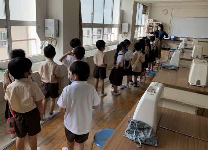 2回目の学校探検に行きました。1回目は5月26日(火)に職員室・保健室・ひまわり教室・ことばの教室に探検に行きました。今日は、パソコン室・音楽室・多目的室・ミーティングルーム・家庭科室・理科室・図書室・講堂を探検しました。次は、グループでもっと調べたいところを決めて、探検に行きます。