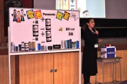 2時間目は、電池の種類・特徴・歴史な、電池のリサイクルと環境などを映像を使ってくわしく教えていただきました。また、電池の正しい使い方を○×クイズで楽しく学びました。